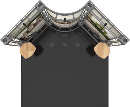 The Sirius 10ft x 10ft inline Orbital Express Truss™ exhibit is an attractive off-the-shelf modular display kit. A curved central panel is accented by two straight wing accents for a uniquely-shaped, eye-catching appearance. Dual tabletops provide additional space for display or discussion, and the backwall is illuminated by three low voltage spotlights. Sirius Truss is a versatile display that can be reconfigured into multiple display combinations. Choose from dye-sublimated fabric or UV printed rollable PVC graphics. Can also ship in 4 OCH2 cases (each): 52"L x 29"H x 15"D.