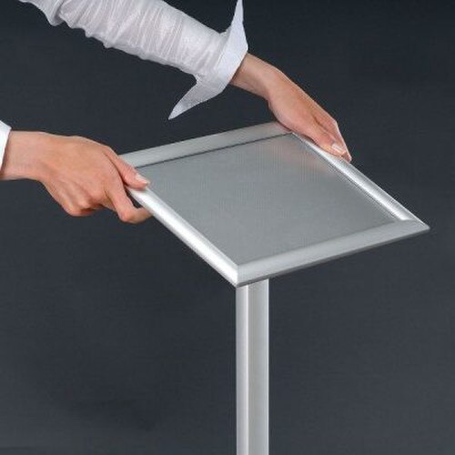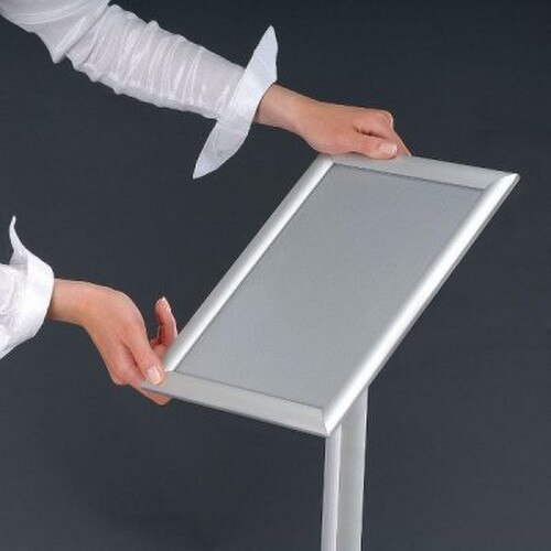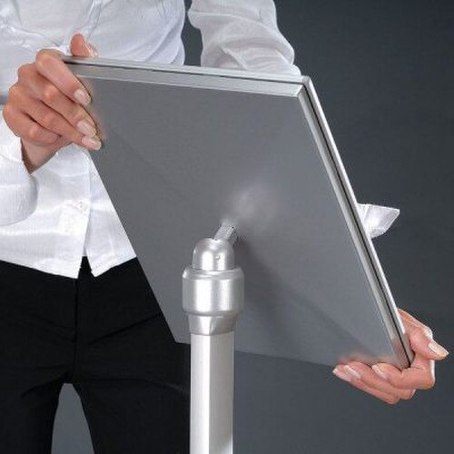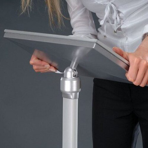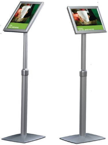 This floor standing sign features an adjustable 18" x 22" sign frame that can be positioned horizontally or vertically and can be set at various angles. With a telescopic height that can be adjusted to perfectly display your promotional advertisement. Packed with an easy-to-understand instruction sheet. Heavy base provides stability in highly frequented areas. Can be used as directories for lobbies and events, menu stands for restaurants, car dealerships and more.