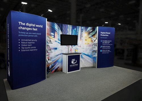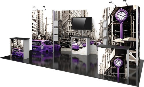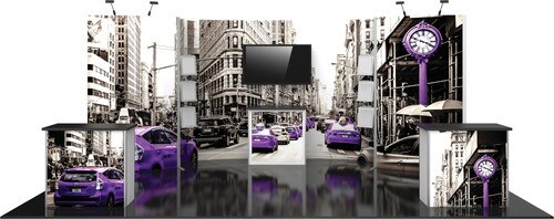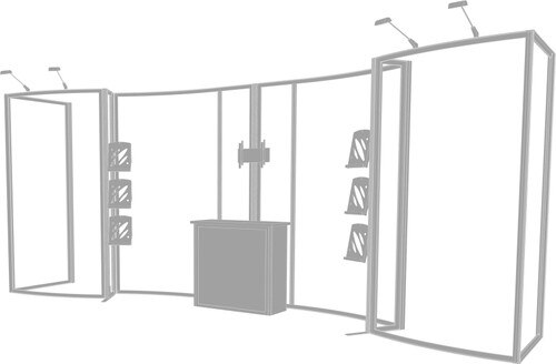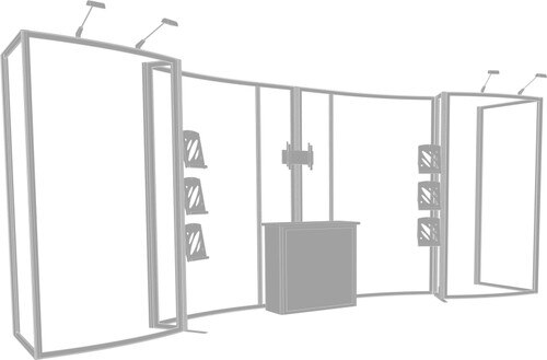 20' Trade Show Exhibit Booth, Includes Counters, Literature Holders, Monitor Mounts, Graphics