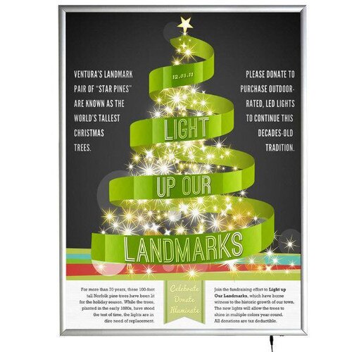 22w x 28h, 24w x 36h LED Wall Poster Light Box Frame, 1" Profile, Blk, Slvr
