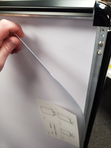 Quickly change your graphics. Just snap open the four sides and place your graphic and the anti-glare protection lens and snap close. Anti-glare PET cover helps your poster keep clean and not damaged.