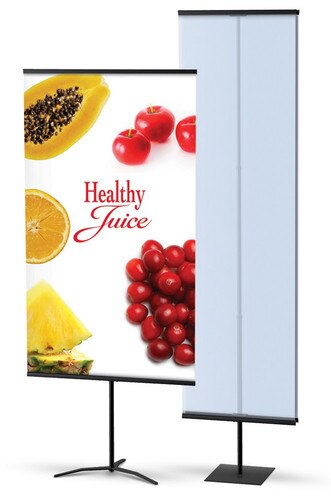 24"w, 30"w, 36"w Banner Stand: Adjustable, 1 Side, Black, Silver