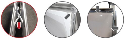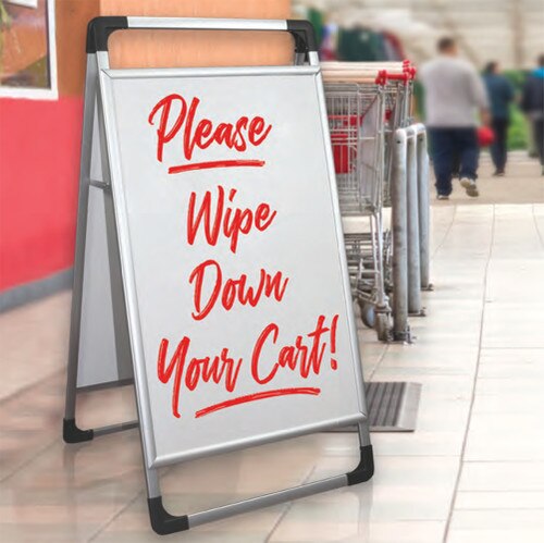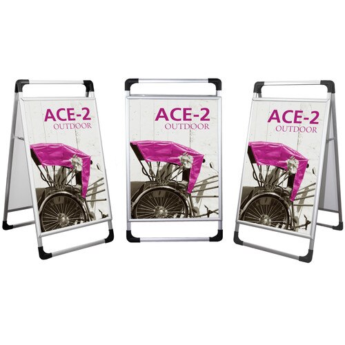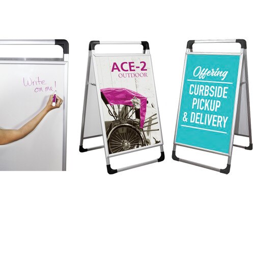 This 24 x 36 A-Frame sign is sturdy, yet lightweight. This eye-catching double sided A-Frame sign, features snap frames on both sides for easy graphic insertion and replacement. This sign holds rigid graphics, such as foam-core, gator board, corraplast or any type of posters and graphics that are 24"w x 36"h. Includes two Dry Erase lenses for each side, to add promotional messages thtat can be changed or removed. Perfect for storefronts, sidewalks, gas stations, car dealerships and much more.