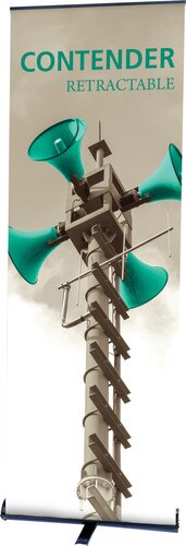 24.5"w x 77.5"h - 105"h Retractable Banner Stand, Bungee, Telescopic, Swivel, Optl Graphic, Black