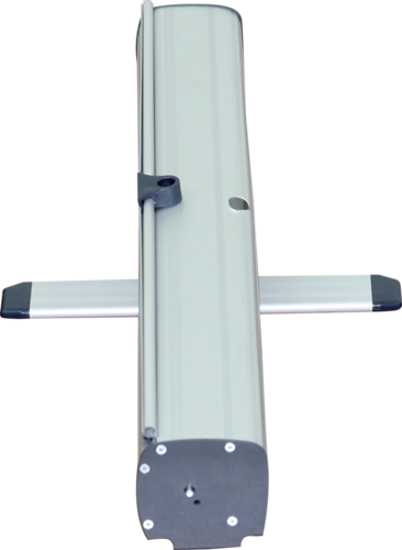 These cheap banner display stands are a perfect low cost solution for displaying your promotional message on a budget. The roll up banner stands are effective for use at conventions, tradeshows or displaying in lobbies, retail stores or any type of events. Assemby is quick and easy. Start by swiveling the stablizing feet into place. Assemble the three-piece bungie pole and secure it into the base of the stand. Gently lean the unit back and roll up the graphic by the top of hook into place. These retractable banner displays are constructed with a roller mechanism that quickly rolls up the banner and springs it back into the base when finished. Display unit can be set up by one person. Each pop up banner display includes an optional single-sided, full-color printed banner that is 23.5" wide x 78.5" high.