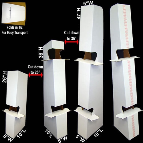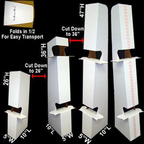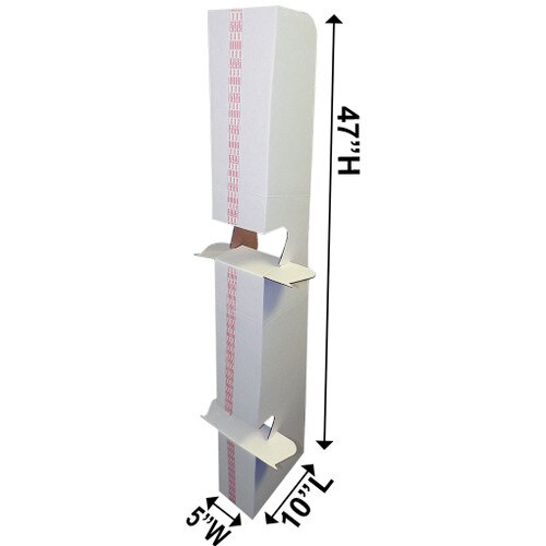 This large, tall and sturdy 47" white corrugated easel back was designed to display up to 60" high large standees and cutouts. This cheap easel stand, sometimes referred to as cardboard easel backs, allow you to easily display large format cutouts, posters and standees. These economical and environmentally friendly, heavy duty, tall easel backs are 2X stronger than most of the competition and are produced on premises from 100% recycled corrugated cardboard. Assembly of these corrugated displays are quick and simple, just lock in the tab, and stick easel back it to your sign with self-stick tape. This tall easel back corrugated display is available with or without self-stick tape. If a tall easel stand or cardboard easel back is what you are looking for, buy them today to meet your literature easel stand needs.