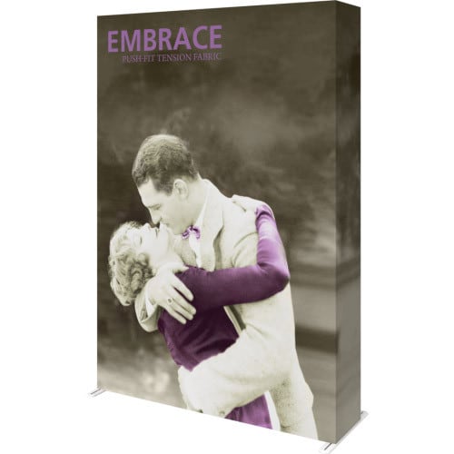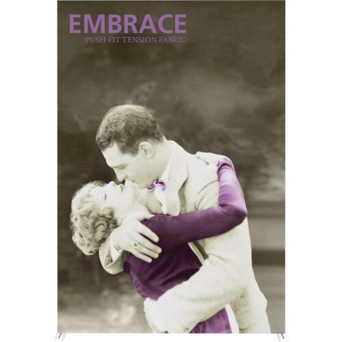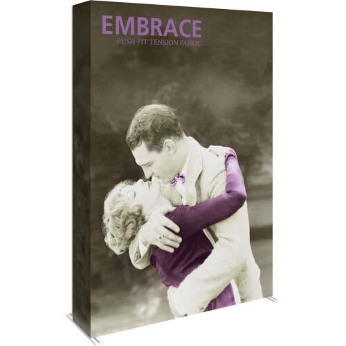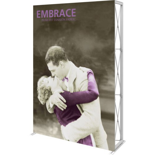 Embrace™ 5ft full height (2 Quad x 3 Quad) is a sleek, collapsible, portable display that delivers style with minimal effort. Embrace 5ft full height (2 Quad x 3 Quad) features a sleek, collapsible white frame with channel bars that hold push-fit fabric graphics offered with or without endcaps. No tools are required for assembly. The lightweight and highly portable display packs away as easily as it sets up for the ideal tradeshow, event or retail display!