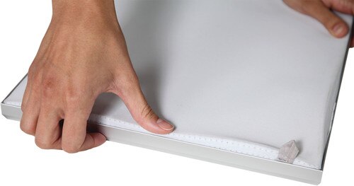 Vector Frame™ Edge S05 is a 59.06"W x 59.06"H square fabric poster display that combines durable, slim, lightweight, less than 1" aluminum extrusion frames and easy-to-apply push-fit fabric graphics. Vector Frame Edge is an ideal poster or display solution for retail, restaurant, office and trade show environments. Kit includes hardware, assembly tool, fabric graphic and wall mounting hardware. Custom frame sizes are available.