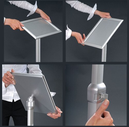 8 1/2 x 11 Floor Pedestal Sign Frame/Adjustable Orientation, Portrait or Landscape, Adjustable Height