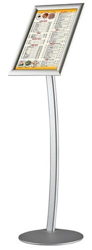8 1/2w x 11h Menu Sign Stand: Curved/Round Base/Silver