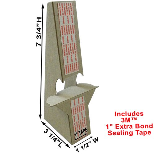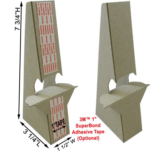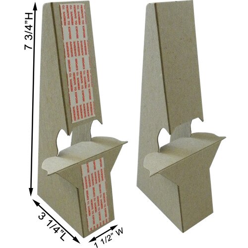 This 8" easel back was designed to display signs up to 12" high. These easel backs are 2X stronger than most competitors and made from heavy duty 50 point chipboard. Assembly is quick and simple, just lock in the tab, and stick easel back it to your sign with self-stick tape. This cardboard easel back is available with or without self-stick tape. Eco Display Products stocks 1000's of standard size easel backs on premises at all times.