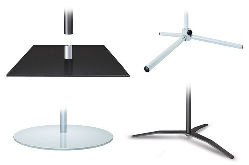 - Round Base, 11" round 5 lb. base. Heavy duty steel bases, with inner support bushing, satin powder coated finish