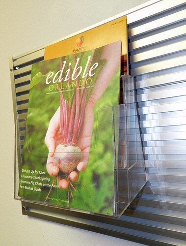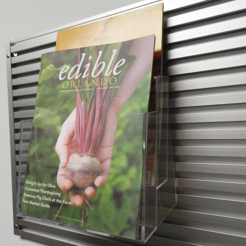 These acrylic 2 Tiered slat wall brochure holders will accommodate (4) 4" x 9" brochures or (2) 8 1/2" x 11" magazines, flyers or catalogs. Featuring a crystal clear view of your literature.
