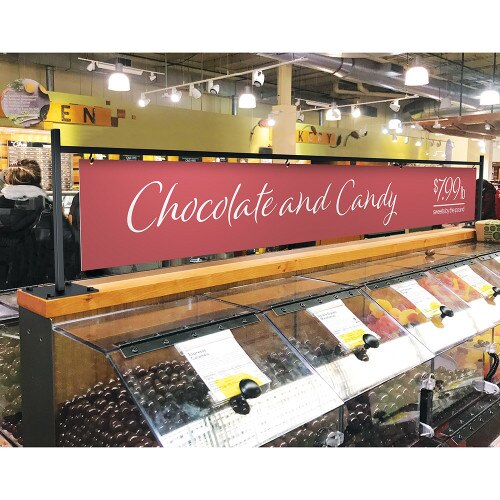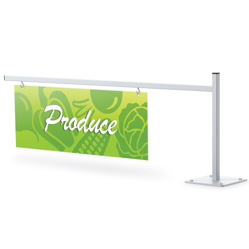 Aisle markers are necessary for well-designed grocery stores, home improvement stores and other large retail outlets for helping to direct customer's to find the products and services they are looking for. These aisle markers feature 24" straight arm, 9" upright and a 4" square base. Electronically welded strong 1/2" steel square tubing. Includes J hooks for easy graphic mounting. Available in satin silver or matte black.