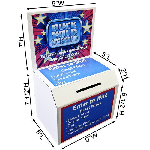 9w x 7 1/2h x 6d w/9w x 7h Header: Cardboard Enter To Win Box/3 Labels