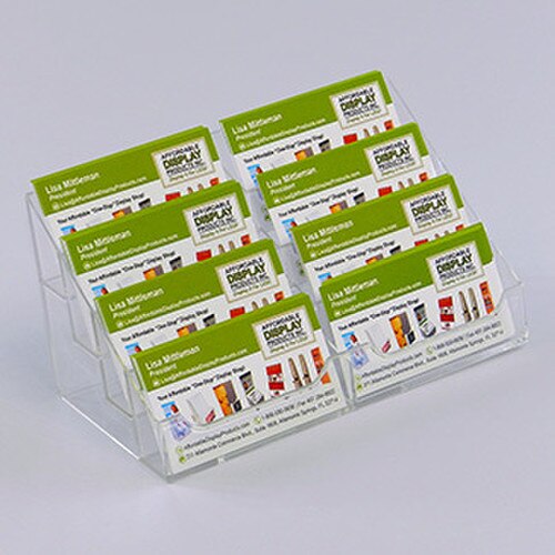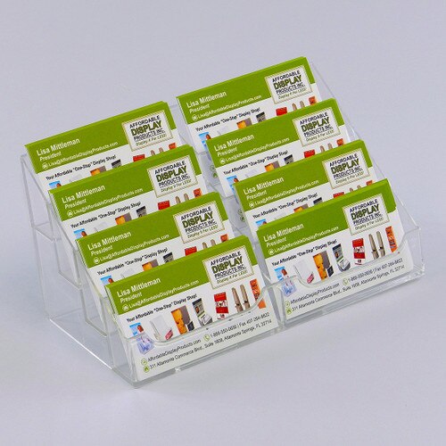 Tiered business card holders are essential for any business that has a larger retail storefront or business office. These 8-pocket tiered plastic business card holders feature four pockets and four tiers to give you plenty of space to place many of your landscape or horizontal business cards. Conveniently place these multi-tiered acrylic business card holders on any desktop or retail countertop. These multiple business card holder displays accommodate standard size business cards.