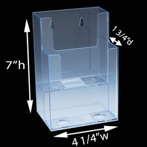 These two pocket, 2 tiered counter and wall brochure displays accommodate brochures and literature up to 4 1/4" wide x 9" high. These 2 tier acrylic brochure holders are perfect for any retail counter top or wall. These two pocket brochure holders feature two keyholes for wall mounting