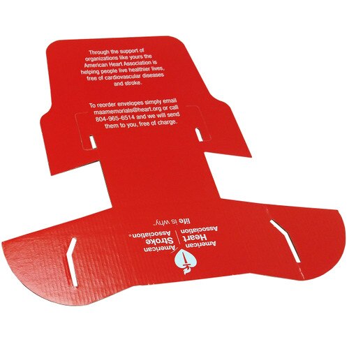 This printed cardboard brochure holder accommodates 4" x 9" brochures and features a full color print up to 4 colors. Just supply us with your camera ready artwork. This personalized brochure holder ships flat and features easy lock in tab assembly. These printed brochure holders are made out of sturdy & durable corrugated cardboard - Not Flimsy Paperboard! These booklet holders, also called leaflet holders or cardboard literature holders, are made, stocked and shipped from our Altamonte Springs, Florida warehouse. 1000s are in stock at all times and ready to ship. Due to their low cost, these popular cardboard holders are a great way to distribute your brochures for short run promotions or any fundraising events, concerts and seminars. This pamphlet holder is made from a cardboard brochure holder template where we will be printing your creative personalized artwork. Be ready to see your brochures fly out of this cardboard display!
