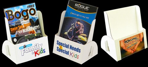 Affordable Display Products, Inc. has a complete line of cardboard brochure holders and custom literature displays. We use the expertise of top die makers and die cutters and buy or material direct from corrugated suppliers. There is no middleman or broker involved with our cheap display holders. We not only provide a giant supermarket of cardboard literature displays, we also manufacture other types of corrugated displays, such as wholesale brochure holders and wholesale display racks, trifold brochure displays, countertop literature holders and displays.