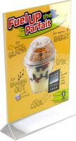 This angled 8 1/2" x 11" sign holder is one of our most popular ad frames. With a slant back design, this unique sign holder is perfect for displaying your literature with a clear view. Displays 8 1/2" wide x 11" high ad inserts. Add an optional brochure pocket or business card pocket for additional exposure. Ideal for all kinds of quick change promotions.