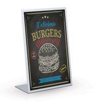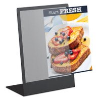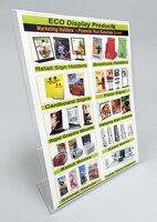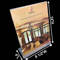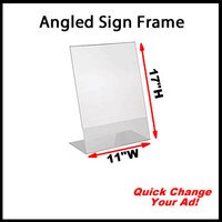 Angled or slant back sign holders are affordable and ideal for displaying an eye-catching clear view of your graphical promotion. These slant back or back angled sign frames display your promotions or graphics in a slightly angled fashion which offers a perfect and clear view of your ad. Easily insert your printed material from either side. These angled sign frames are offered in various sizes. Offered with or without brochure pockets and business card holders.