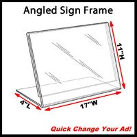 Angled sign holders are used by a variety of industries such as retail stores, hotels, banks, medical offices and law firms. Due to their low cost, these angled sign frames are often purchased in bulk to display in multiple locations. Perfect for displaying on desk tops, table tops and retail point-of-purchase counters.