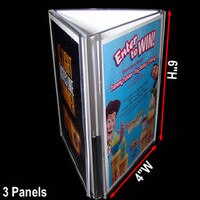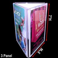 Three Panel Table Menu Sign Holders: These triangle style menu holders enable you to display three menus or daily specials on restaurant tabletops. Easily change out menus daily through the top or bottom of the sign holder. Our acrylic table tents are available in different sizes and are great for advertising your menu cards on tables.
