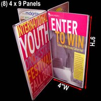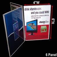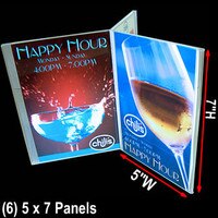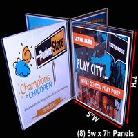 Eight Panel Tabletop Sign Holders: 8 panel acrylic tabletop sign holders, sometimes referred to in the food industry as restaurant table sign holders or restaurant menu holders display eight different advertisements at once. These 8 sided plastic tabletop sign holders promote sales, events, menus and up and coming opportunities to your customers. Every restaurant or bar across the country should have one of these on every table or counter. These plastic/acrylic countertop sign holders are like 8 sign holders in 1. If 8 sided tabletop sign holders are what you are searching for then look no further, order your stock purchase now for immediate shipping and meet your tabletop signage needs.