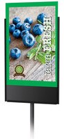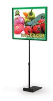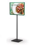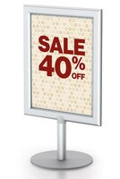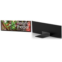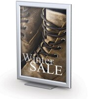 Store Counter Sign Holders. Retail counter sign holders come in a multitude of styles and sizes. These eye-catching black and silver framed counter signs will make your promotions pop. Grab attention and gain competitive advantage in your marketplace by differentiating your visual merchandising with these beautifully designed merchandising sign frames. These sign holders are perfect for brightly displaying your promotions, pricing and brand messages.