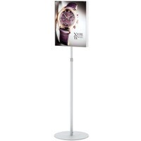 Poster Display Stands. These poster size sign holders are produced from metal with aluminum frames and are built to last. Single and double sided poster sign stands are available. The most popular poster frame sizes are 22" x 28" and 24" x 36" free standing sign frames. Poster Display Stand Features Include:
