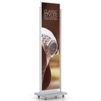 Floor standing signs includes a large selection of poster display sign stands, floor signs with brochure pockets, mall directories, menu displays, sign base graphic mounts, sign clamp stands and outdoor sidewalk signs. Top loading sign frames and snap frames enable you to quickly change your graphics effortlessly. Outlined below are the floor standing sign categories.