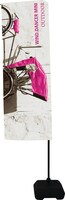 Pole Banners are vertical banner displays that feature top and bottom dowels that are inserted through banner graphic pole pockets. Easily extend the telescopic pole to desired height and re-tighten with lock that allows quick height adjustments. Round, square and travel bases available. These stand up banners are light weight, portable and easy to travel with.