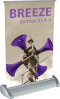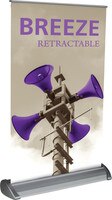 Retractable banner stands are by far the most sought out roll up banners for trade shows, conferences and conventions due to the quick and easy assembly. When setting up the retractble banner display all you need to do is easily pull up the graphic from the base and use the knob to secure the top of the banner in place. When finshed the scrolling banner retracts or rolls back into the base. Its that simple. Graphics are protected inside the base when in transport so there are minimal chances of damage and soiling. At the end of the day, often times people are tired and rushed when taking down a trade show booth and the ease and simplicity of taking down a retractable banner is less stressful.