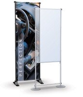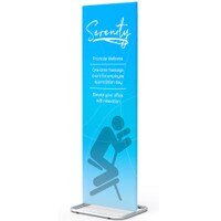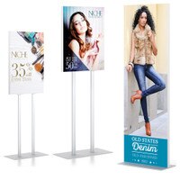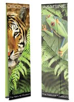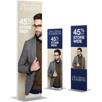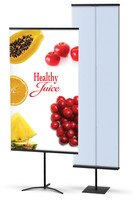 Footless Stand Up Banners are vertical banners that offer floor-to-top graphics with no visible feet. Features include a spring loaded graphic tension and a quick two minute assembly and take down. These vertical banners are suitable for any substrate. Size ranges from 24" - 48" wide and 42" - 96" adjustable height.