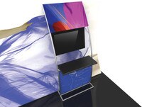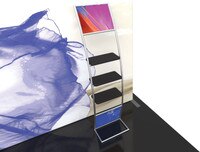 Trade show exhibit display walls and panels are often utilized in various configurations by combining a few smaller graphic floor display stands together with larger exhibition display panels to form larger display walls with different shapes and styles. You can create all types of exhibit booth designs such as L shaped exhibition stands, U shaped exhibits, and various other types of configurations. The benefits of being able to add and remove exhibition display stands for different trade show events is profound. By making larger exhibit display systems out of smaller individual floor standing exhibit panels, it reduces stress by making it more compact and easy to transport. Another added benefit is that you can create different graphics and advertising messages for each exhibit display panel.