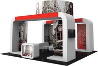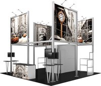 20' Exhibit Booth (Kit), Includes Graphics, 2 Counters, 4 Monitor Brackets, Locked Storage