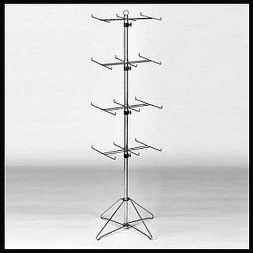 This 24 hook spinner rack gives your merchandise great presentation! With hub-and-spoke tiers, this tall spinner rack, also referred to as a spinner display rack or spinner stand, will hold a wide variety of merchandise. These 24 hook spinner stands allow you to sell products of varying sizes - from candy and toys to gloves and cookware. These tall floor spinners save you money in shipping since it's shipped knocked down. It's most definitely the right choice when floor space is an issue. Its four tiers spin individually to give your customers the ability to browse through your merchandise with ease. If a tall spinner rack or merchandise spinner rack is what you are searching for, buy them now to meet your customer's impulse buying needs near checkout.