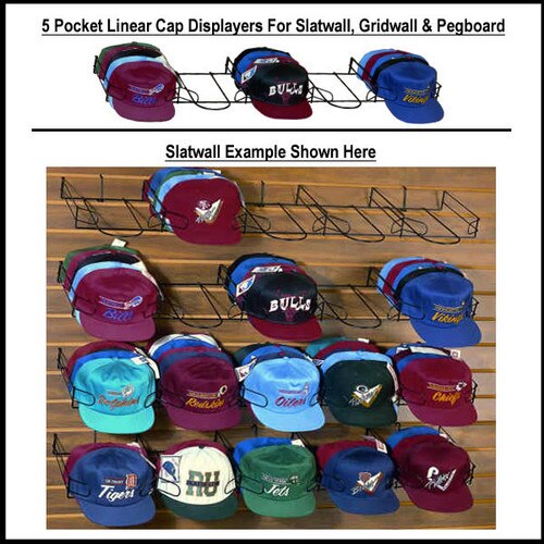 60 Cap/5 Pocket - Linear Cap Display: For Gridwall, Pegboard or Slatwall