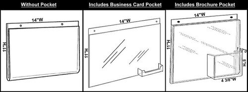 These 14 inch wide by 11 inch high wall mountable ad/sign frames, sometimes popularly referred to as ad holders or frames, securely hold your 14" x 11" prints, promotions and ads and is a great way to advertise your literature at eye-level. These cheap sign ad frames or holders will serve countless needs over time for your business. Don't underestimate the number of ways you could use cheap sign/ad displays to show your ads or signs to convey all kinds of messages in and around your business. Display on walls, doors, convenience store doors, bathroom stalls, windows, waiting rooms, lobbies and more. If these 14"w x 11"h sign wall frames are for you, buy them today to meet your business sign ad displays need.