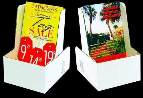 This cardboard booklet holder is a very low cost and effective way to advertise most 6" x 12" thicker booklets and pamphlets. This style booklet holder is deeper and taller than the standard half fold pamphlet holder size to allow you to display more and taller material. Due to their low cost, this extra deep cardboard booklet holder is a great way to distribute your material in greater volumes. Ships flat with easy lock in tab assembly.