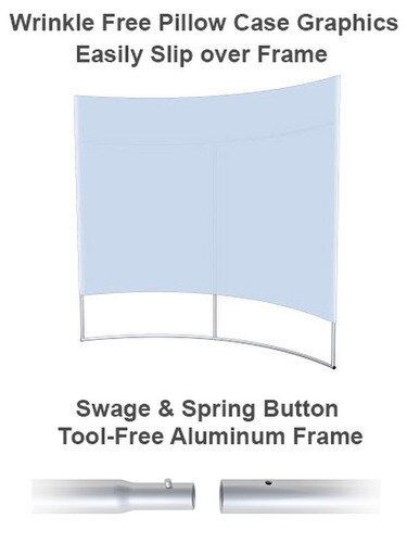 These curved backdrop displays are at the top of the list when it comes to quick and easy assembly. With a state of the art swage and swing button tool free aluminum frame and wrinkle-free slip-on pillow graphics, you will have this backdrop display up in minutes. Outlined below are some of the fantastic features of these backdrop display walls.