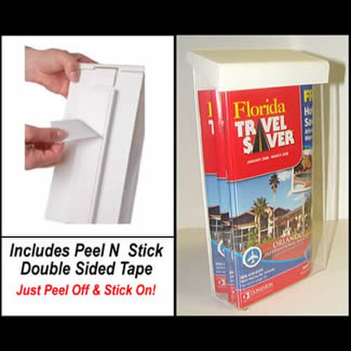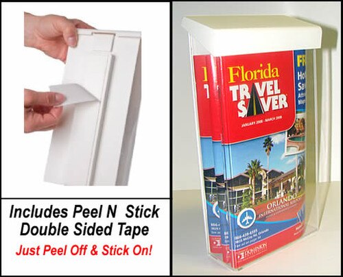 These heavy duty outdoor brochure holders accommodate 4" wide x 9" high brochures. These acrylic outdoor brochure boxes, sometimes called flyer boxes, feature a self-closing lid so your brochures are protected. On these sturdy outdoor real estate boxes, just peel off the double sided tape to easily mount to any surface. These outdoor acrylic brochure or flyer holders include alcohol pad for clearing surface. These outside brochure boxes or literature boxes are made of non yellowing heavy duty plastic so it will last outdoors. These outdoor real estate boxes are perfect for gas pump applications and more. Perfect Gas Pump Brochure Holder for Brochures, Credit Card Applications & More Inside Pocket Dimensions: 4 5/8"w x 9 1/16"h x 2"d Overall Dimensions: 4 7/8"w x 10"h x2 1/2"d Self closing lid "SURE CLOSE" Clear Non-Yellow Heavy Duty Plastic Front New E-Z Mounting-Just "Peel & Stick" anywhere Includes alcohol pad for clearing surface Pocket Capacity: Approx.150 pamphlets Includes Double-Sided Tape No Assembly Required Material: Ridged Styrene (Acrylic) Material Thickness:.100