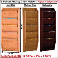 HIPPA Compliant Chart Holders Keep Your Patient's Records Private. HIPPA Compliant medical and patient chart holders organize patient charts privately and securely as well as follow the HIPPA complacency regulations. These wooden medical chart racks are commonly utilized in hospitals or health care centers.