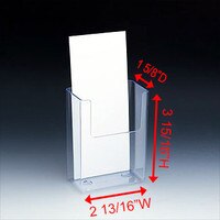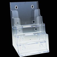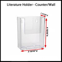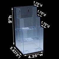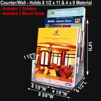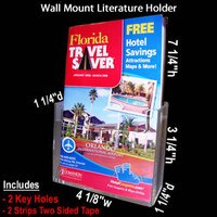 Wall mount brochure holders or wall magazine displays will easily mount to any wall and are commonly used as literature organizers to clean up the messy stacks of brochures, pamphlets and magazines scattered on desk and table tops in offices, lobbies and waiting rooms. Most of these wall mount literature holders, also sometimes referred to as wall mount literature displays and wall literature holders, can also be displayed on counters or tabletops as they have 2 key holes for wall-mounting. Acrylic brochure displays, also called plastic brochure holders, are a great way to present a clear view of the first page of your literature so people easily find the magazine they are looking for. Wall mount brochure holders or wall mount magazine holders are available in lots of sizes and styles to meet most needs of our customers. Some of these wall mounted brochure holders come with two strips of self stick adhesive tape or pre-drilled holes so hanging them on the wall is quick and easy.