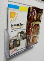 Wall mounted brochure holders, sometimes referred to as wall brochure holders, are a great way to display your literature "eye level" on doors, walls, windows and bathroom stalls. These wall literature holders mount easily and securely. Just peel off the tape and stick to wall surface.