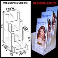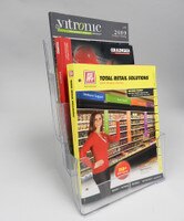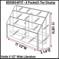 Stepped or tiered pamphlet displays, also sometimes called tiered brochure racks with multiple pockets, tiered literature display racks, will keep your literature organized and enable you to display numerous leaflets, pamphlets, digests, magazines and catalogs in multiple pockets and in one central location. Multi-pocket, multi-tiered pamphlet displays, literature display racks and magazine holders are a great way to display various sizes of literature in one display. Display different brochure versions at once. For example, display different languages such as spanish brochures and english brochures. The "stepped" feature elevates your brochures on each tier showcasing the most important information such as your headings at the top of your literature. With these tiered literature racks, on lookers can clearly view with a glance rather than sort through messy piles of magazines on table tops in lobbies or waiting rooms. Some of our tiered literature racks or tiered displays were constructed for both counter top and wall mount use. The wall mount leaflet, magazine and pamphlet displays feature 2 keyholes on the back panels for easy wall mounting. This provides great functionality that provides you with the capability of easily and quickly moving your digest and magazine literature virtually anywhere on counters and walls. Some magazine displays and multi pocket literature holders feature brochure dividers so you can easily mix up your brochures and magazines in one business display holder.