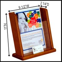 Wooden countertop literature racks, also called wood brochure holders and brochure displays, are designed for a more prestigious or elegant atmosphere such as law offices and doctor's offices.If you want to combine your literature and brochures together, you can select countertop or floor standing single pocket, multi-pocket, combination or multi-tiered brochure display styles. Many of our wholesale brochure holders are as attractive as they are lightweight and portable. These dirt cheap acrylic displays, somtimes called plastic literature holders, are commonly found all over especially at conventions and trade shows for potential prospects and customers to take away company and/or product material. The quality wooden displays or wooden brochure holders can be used in law firms, libraries, offices, museums, reception rooms, lobbies, state agencies, medical offices and school offices - practically anywhere you want your ad message seen. With our cheap single pocket holder for brochures, up to our inexpensive multi-tiered brochure holders, these brochure holders can provide you with important advertising and marketing.