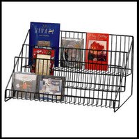 Use these wire magazine racks and brochure display stands to make leaflets, books, videos, booklets, brochures, catalogs, digests, newspapers and magazines look neat and more organized than they do on office shelves. As we all know, typical office shelves get cluttered with stacks of books or magazines and that isn't ideal for displaying your material or information or others brochures and magazines. We have an assortment of metal racks and metal stands from chrome leaflet holders, newspaper display racks to tall magazine stands and tall literature stands. These small to large metal display racks and stands will add value and even to the decor of a room, lobby or office. With our wire literature racks or brochure display stands, design an environment that caters to better storage of your magazines, brochures, books and files at a cheaper price than wood literature racks and stands. Browse through our small to tall wire display racks to find the cheap literature racks that meet your business display needs.