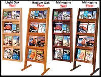 Wood literature racks, also popularly called wood literature stands, are an important marketing piece to help increase sales, promote organizations or just to display all sorts of material or information. These quality but affordable wood magazine racks and stands are often used in professional offices, lobbies, hospitals and waiting rooms. These floor and wall mounted magazine racks allow you to display your material or information in one or more prominent places in the room that doesn't take up much room and don't block walkways. Use mounted wall magazine racks to make literature, brochures, catalogs and magazines look neat and more organized than they do on office shelves. Hanging wall magazine racks are very important for many types of businesses, organizations and stores, from restaurants, retail shops, convenience stores and waiting rooms.
