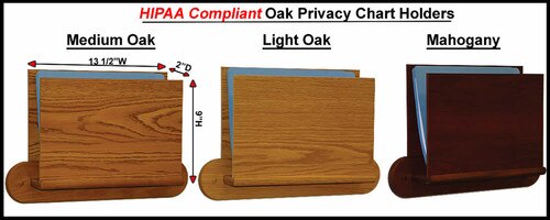 These beautiful, single pocket, HIPPA compliant medical chart racks have a pocket size of 13 1/2" x 11 x 2" thick and feature a tall 9" high front panel. These open ended privacy chart holders provide easy access to patient files while providing necessary privacy. These quality medical chart holders are an attractive way to keep your hospital medical records handy. These medical wood chart holders or racks are constructed with a 3/4" solid oak bottom mounting plate. These medical chart racks add warmth and professionalism to any room or office. These 13.5" wide wooden open-ended medical chart holders are ideal for standard chart sizes, and are available in light oak, medium oak or mahogany. If these professional chart holders are what you need, buy them now to meet your medical displays need.